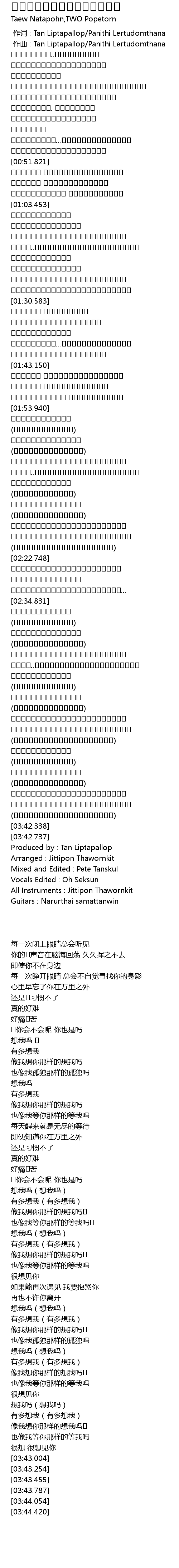 作词 : Tan Liptapallop/Panithi Lertudomthana |