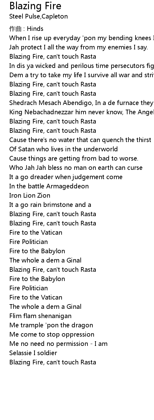 | Blazing Fire, can' t touch Rasta |