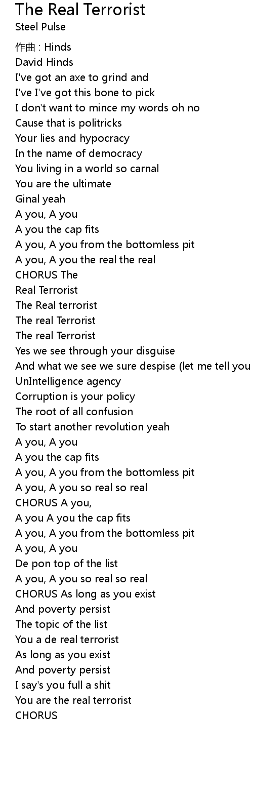 | Song | The Real Terrorist |