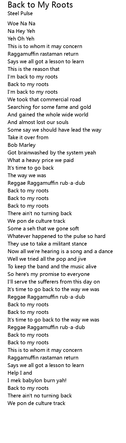 Back to My Roots Lyrics