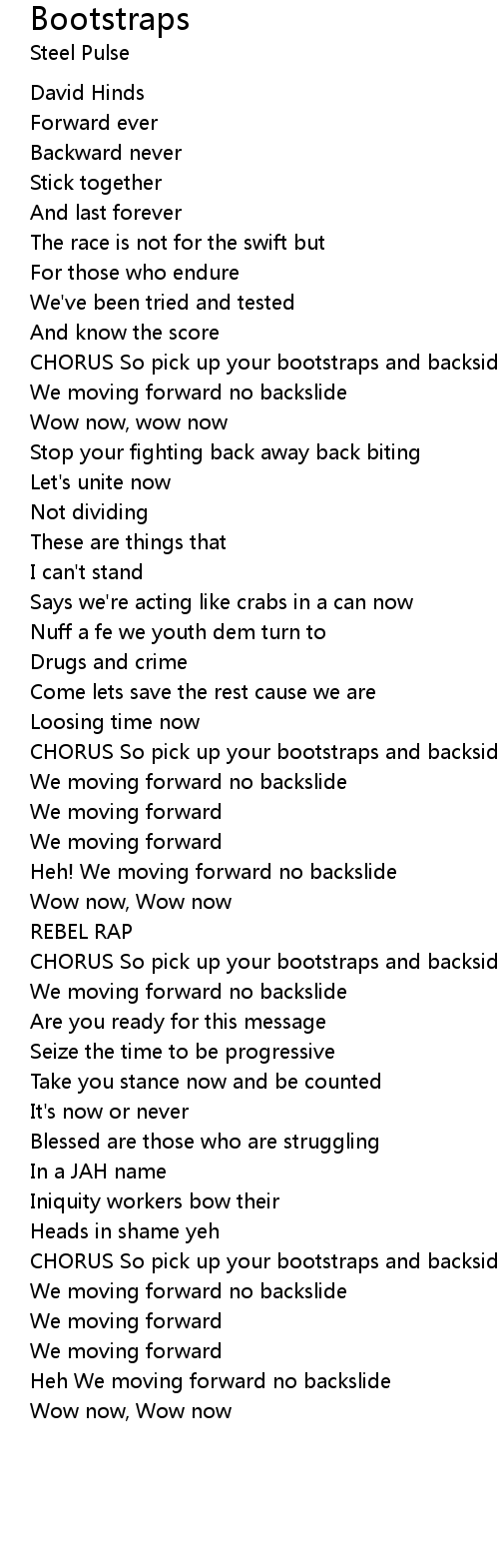 CHORUS So pick up your bootstraps and backside |