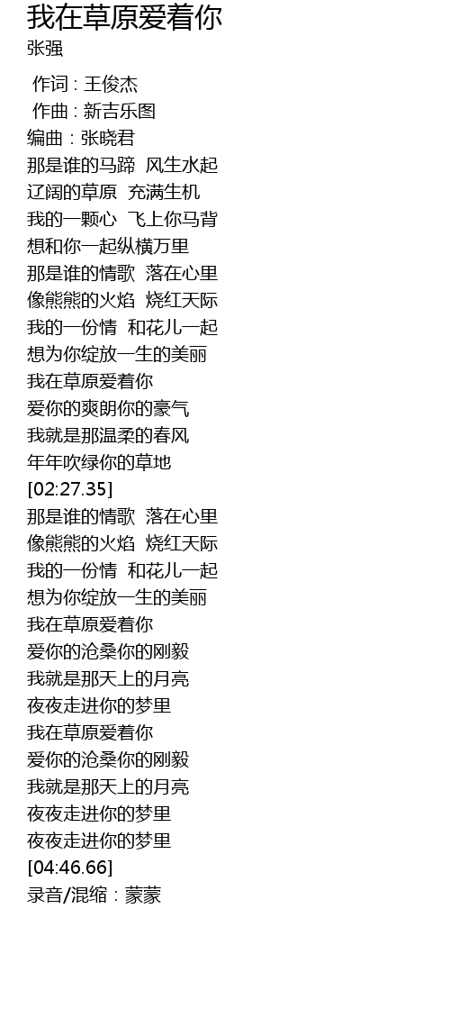 | [04:48.31] | 录音/混缩:蒙蒙 |