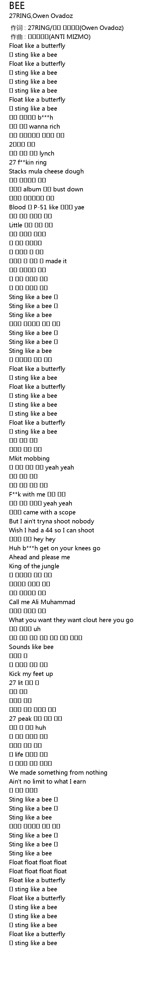 | [00:15.360] | sting like a bee |