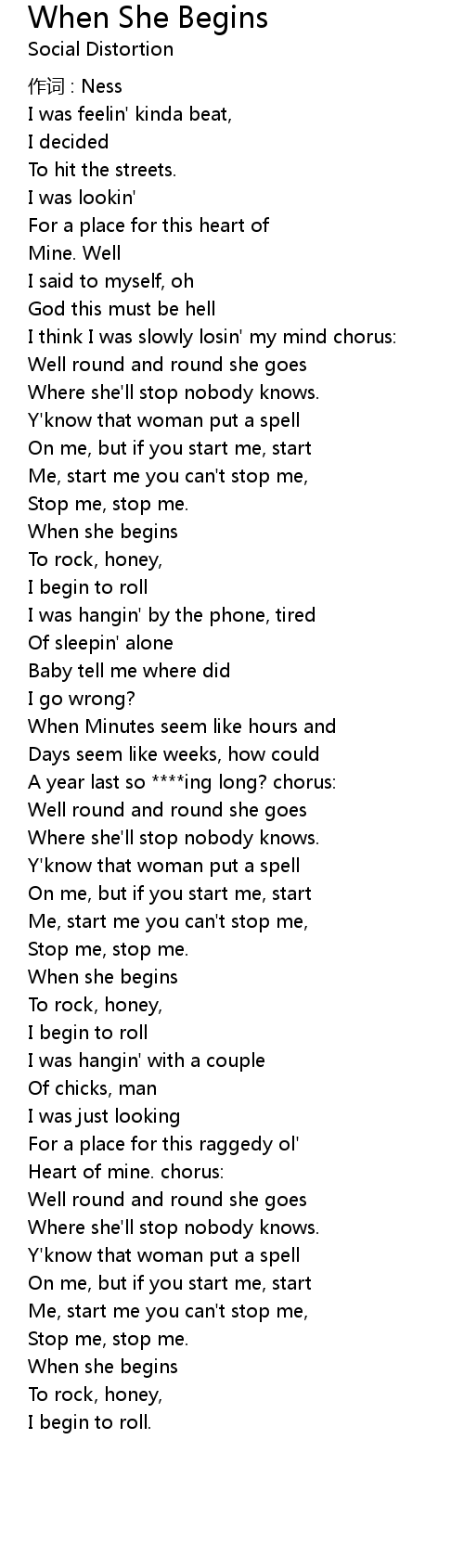 | Song | When She Begins |