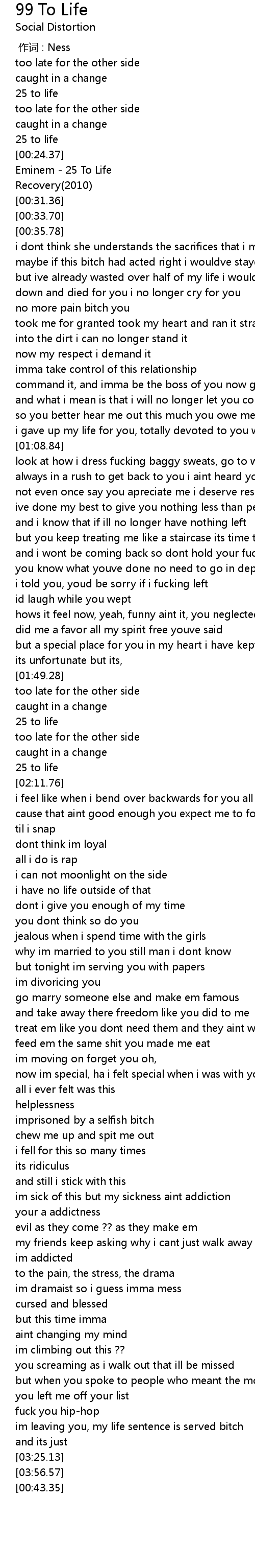 | [03:21.91] | im leaving you, my life sentence is served bitch |