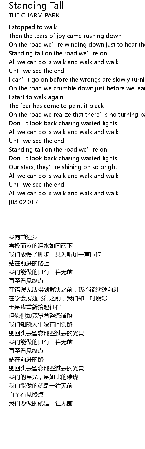 | [00:32.772] | Standing tall on the road we’re on |
