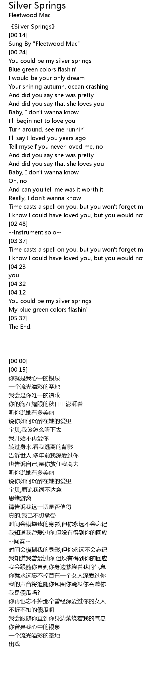 | [05:10] | You could be my silver springs |