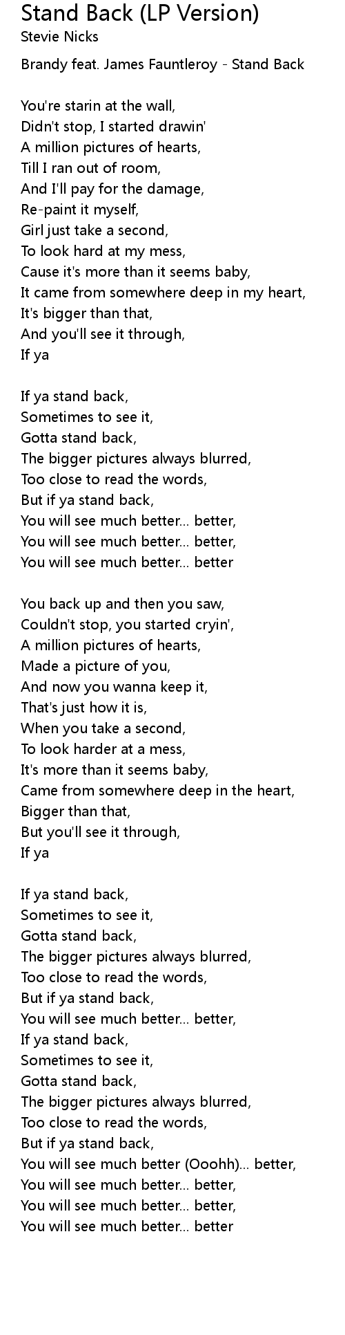 If ya stand back, |