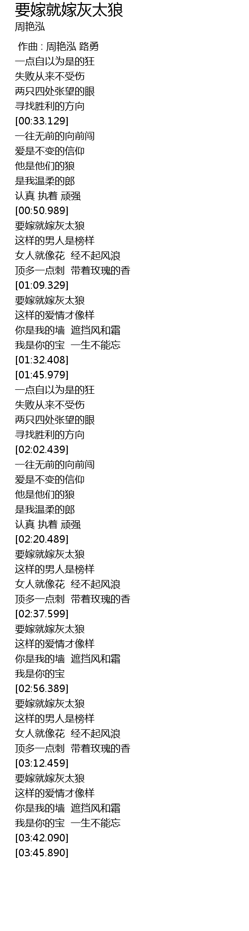 | [02:20.759] | 要嫁就嫁灰太狼 |