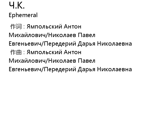 [00:00.00-1] 作词 : Ямпольский Антон Михайлович/Николаев Павел Евгеньевич/Передерий Дарья Николаевна