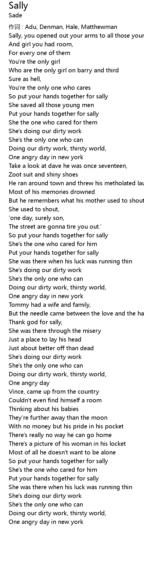 | 作词 : Adu, Denman, Hale, Matthewman | |
