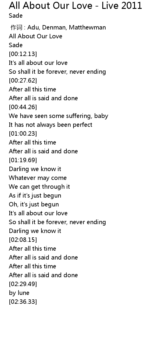 | [00:00.00] | All About Our Love |