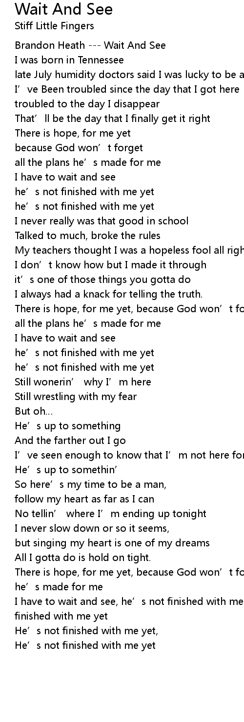 | [00:02.23] | Brandon Heath --- Wait And See |
