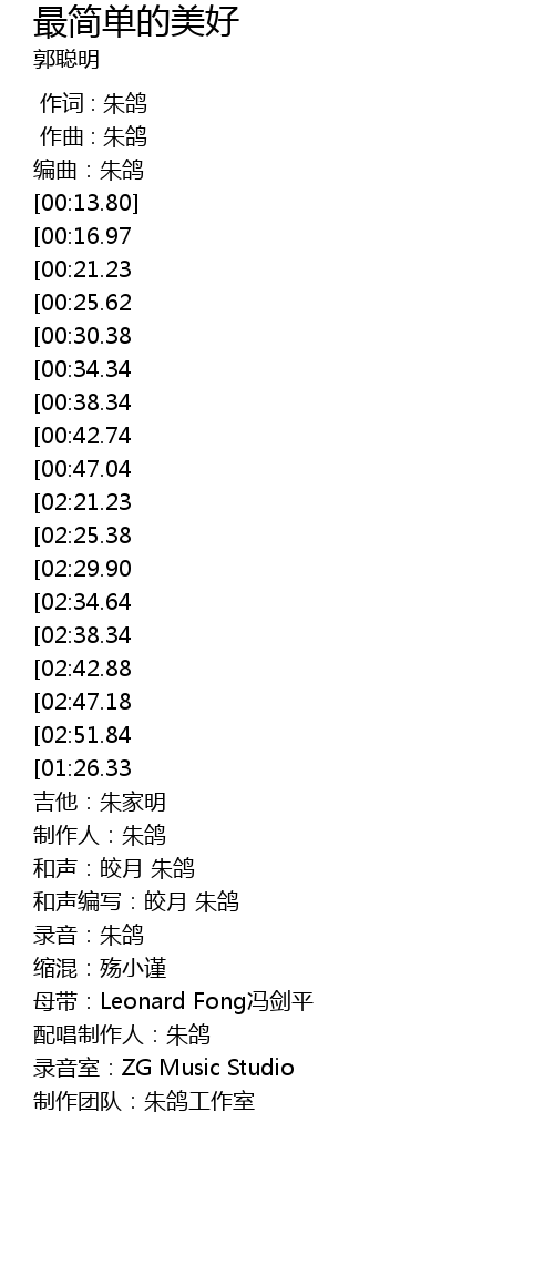 | [03:36.86] | 配唱制作人:朱鸽 |