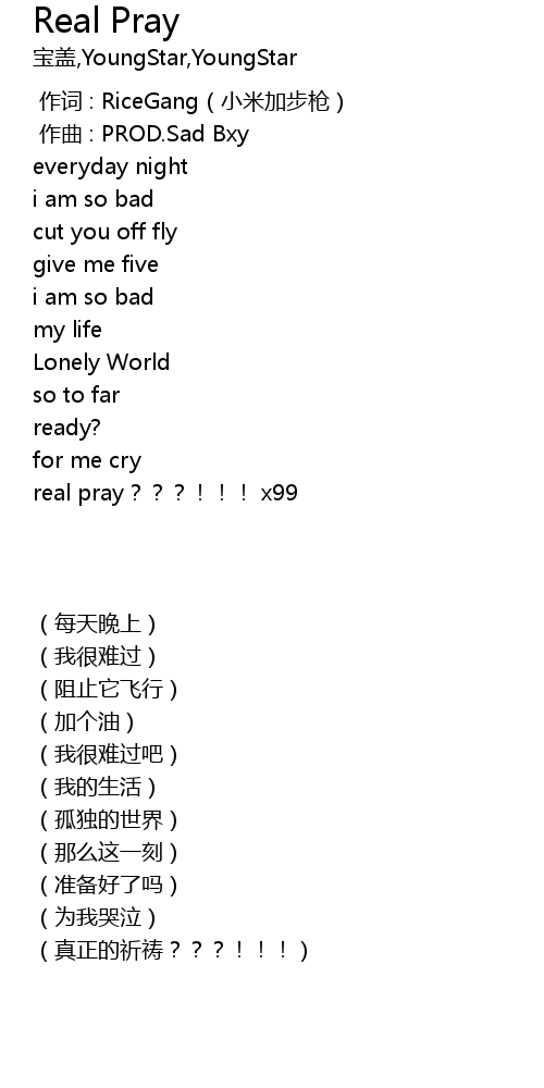 | [00:00.000] | 作词 : RiceGang(小米加步枪) |