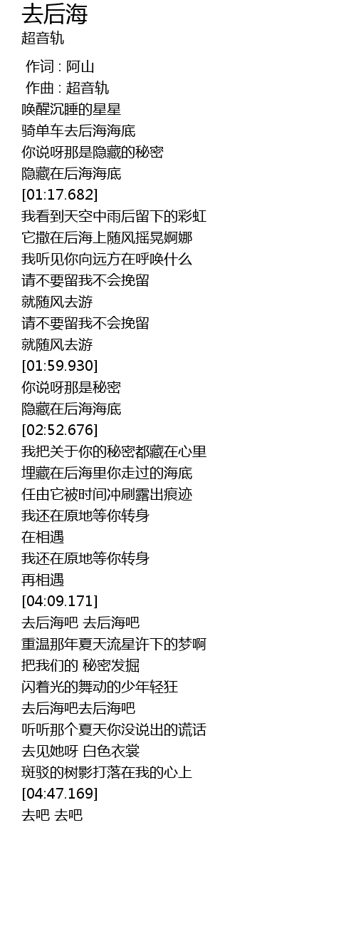 | [04:11.921] | 去后海吧 去后海吧 |