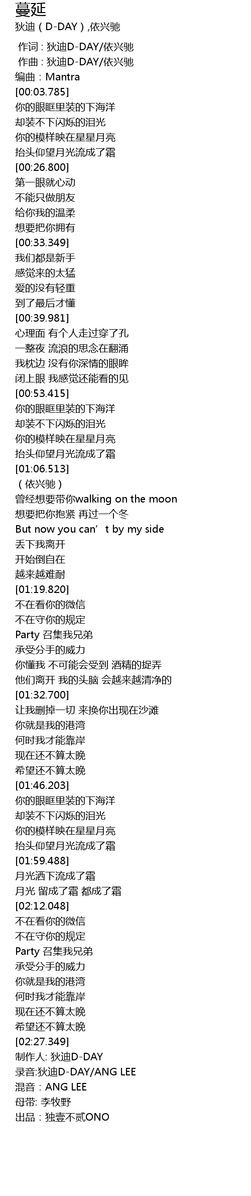 | [02:29.971] | 制作人: 狄迪D-DAY |