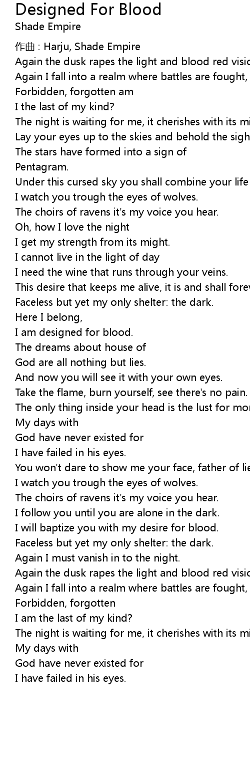 | Again the dusk rapes the light and blood red vision covers my sight. | |