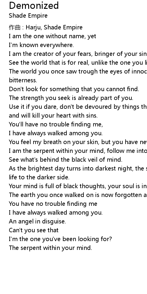| Your mind is full of black thoughts, your soul is in my control. | |