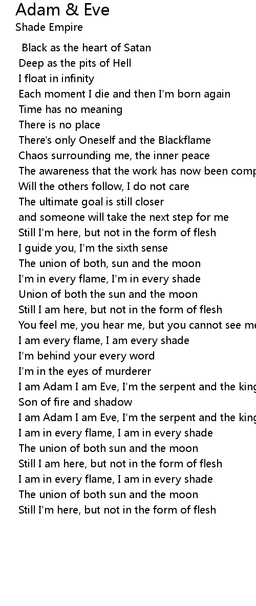 I am Adam I am Eve, I'm the serpent and the king |