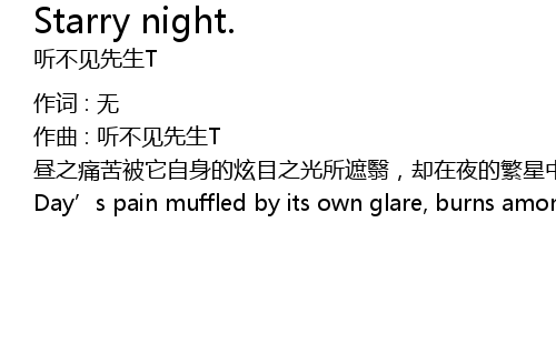 | 昼之痛苦被它自身的炫目之光所遮翳,却在夜的繁星中燃烧。 Day’s pain muffled by its own glare, burns among stars in the night. |