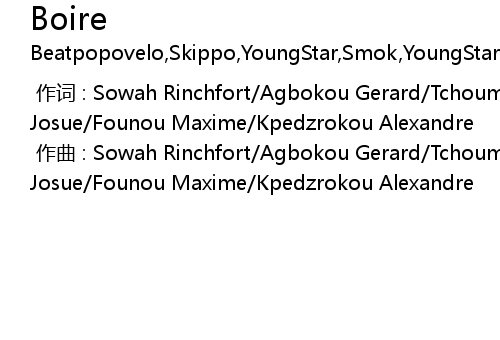 | [00:00.00-1] | 作曲 : Sowah Rinchfort/Agbokou Gerard/Tchoumado Agossou/Ametokodo Josue/Founou Maxime/Kpedzrokou Alexandre |