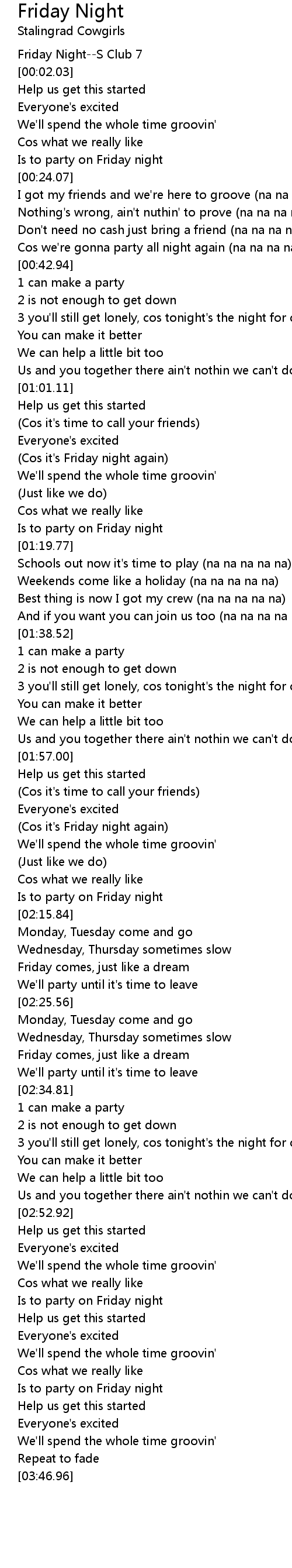 (Cos it's Friday night again) |