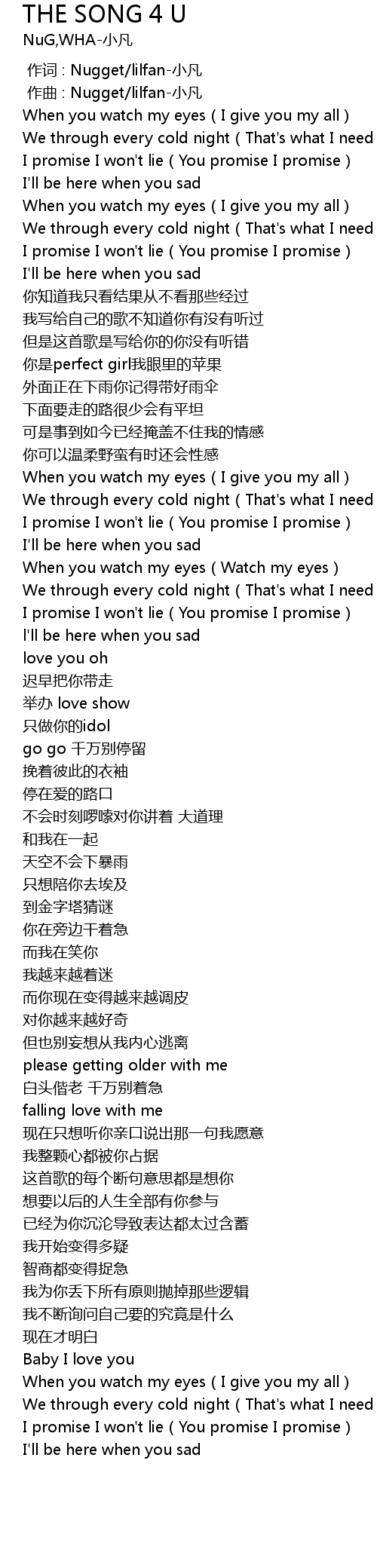 | [00:00.00] | 作词 : Nugget/lilfan-小凡 |