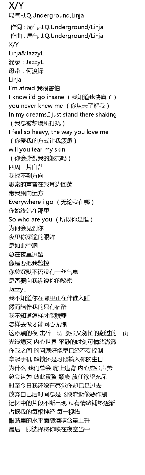 | [00:00.865] | zuò qǔ : jú qì J. Q. Underground Linja |