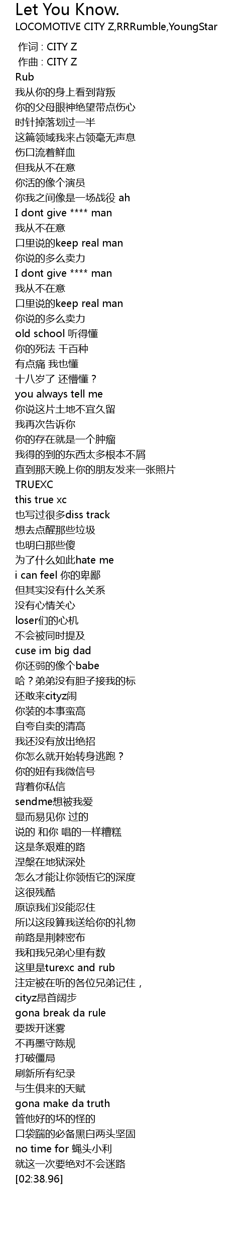 | [01:29.26] | yě xiě guò hěn duō diss track |