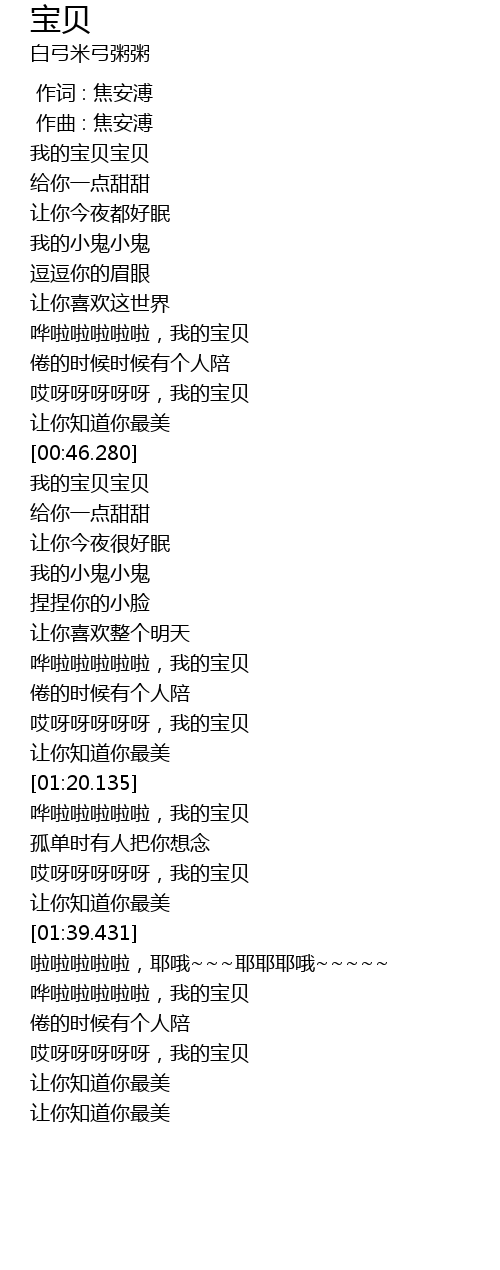 | [00:41.078] | ai ya ya ya ya ya, wo de bao bei |