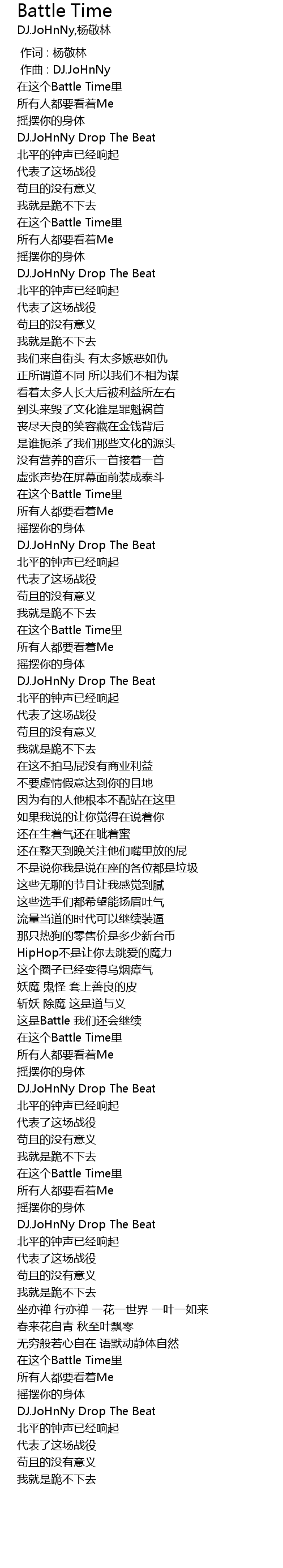 | [00:15.194] | zài zhè gè Battle Time lǐ |