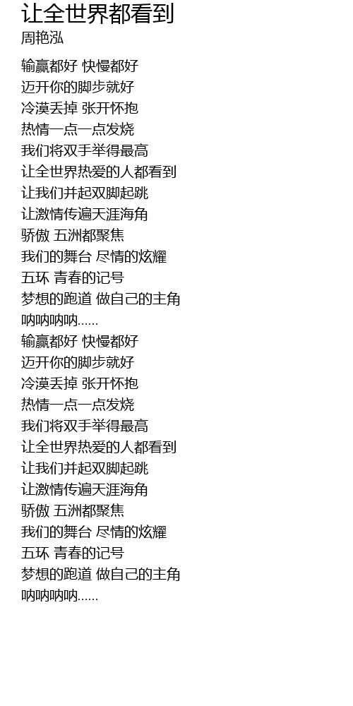 | [02:33.79] | 骄傲 五洲都聚焦 |