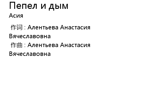 | Song | Пепел и дым |