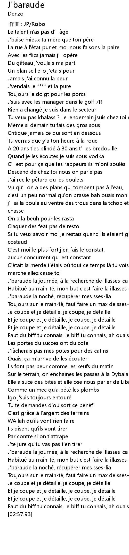 | [02:53.28] | Faut du biff tu connais, le biff tu connais, ah ouais |