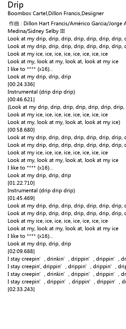 | [00:00.068] | Look at my drip, drip, drip, drip, drip, drip, drip, drip |