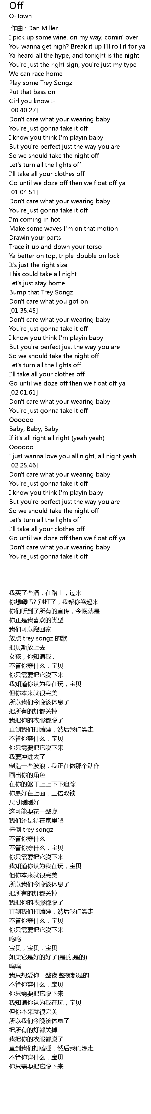 | [00:40.77] | Don't care what your wearing baby |