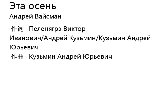 | [00:00.00-1] | 作词 : Пеленягрэ Виктор Иванович/Андрей Кузьмин/Кузьмин Андрей Юрьевич |