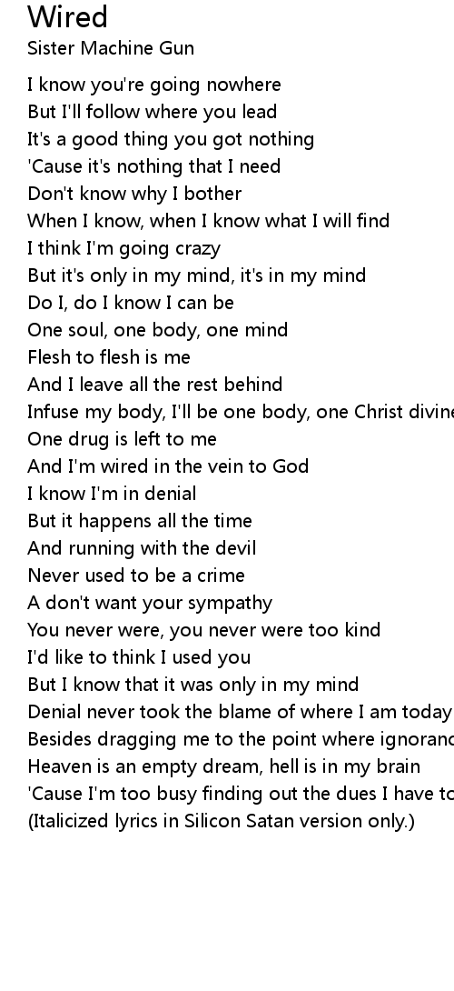 (Italicized lyrics in Silicon Satan version only.) |