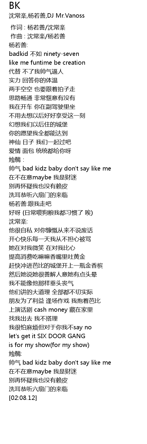 | [00:47.930] | 帅气 bad kidz baby don't say like me |
