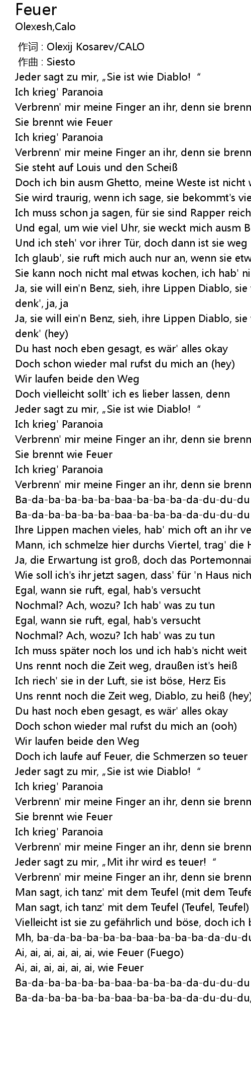 | [03:03.07] | Ai, ai, ai, ai, ai, ai, wie Feuer (Fuego) |