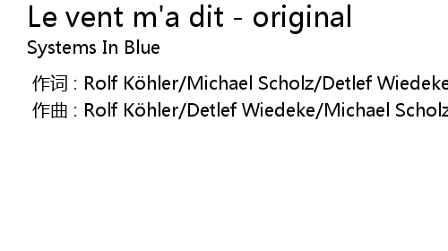 | [00:00.000] | 作词 : Rolf Köhler/Michael Scholz/Detlef Wiedeke/Thomas Widrat |