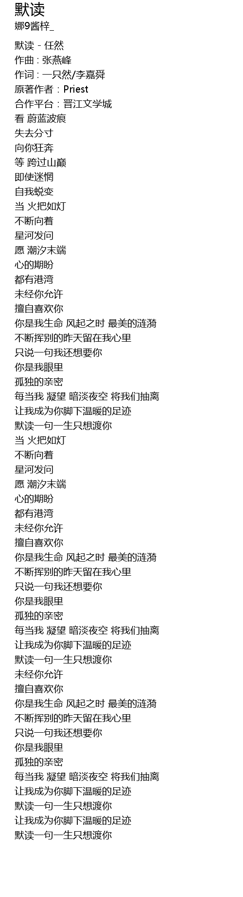 | mò dú yī jù yī shēng zhǐ xiǎng dù nǐ | |