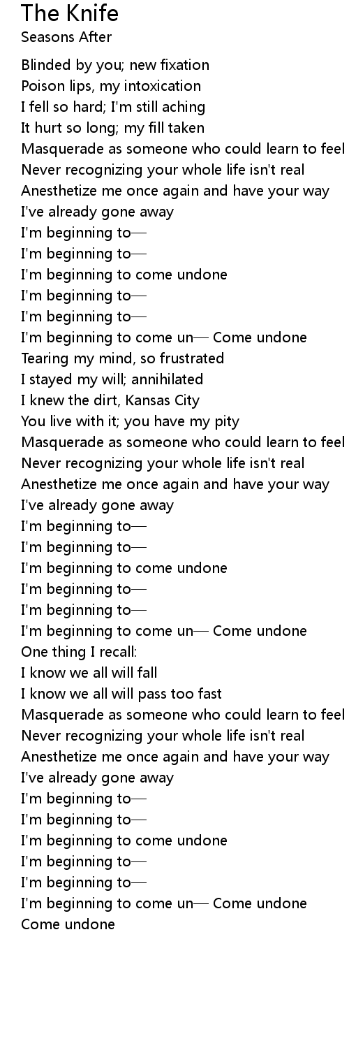 | I' m beginning to come undone | |