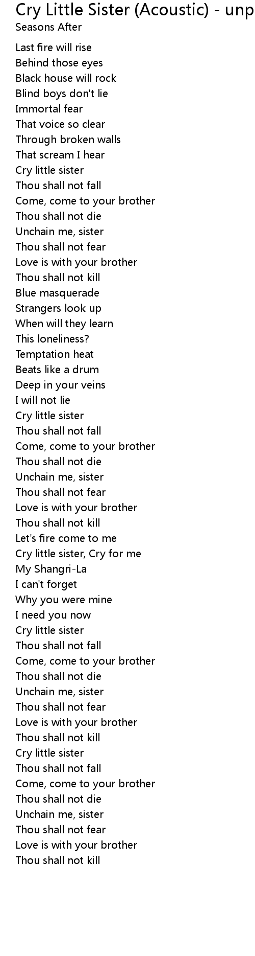 Cry Little Sister (Acoustic) - unplug Lyrics