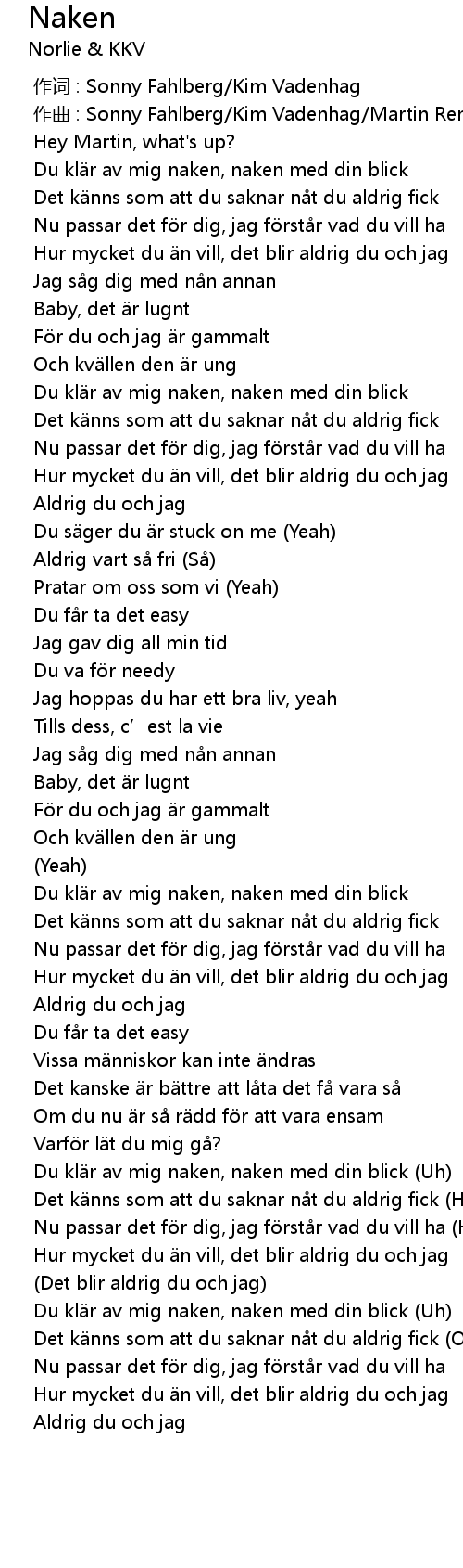 | [02:43.426] | Du klär av mig naken, naken med din blick (Uh) |