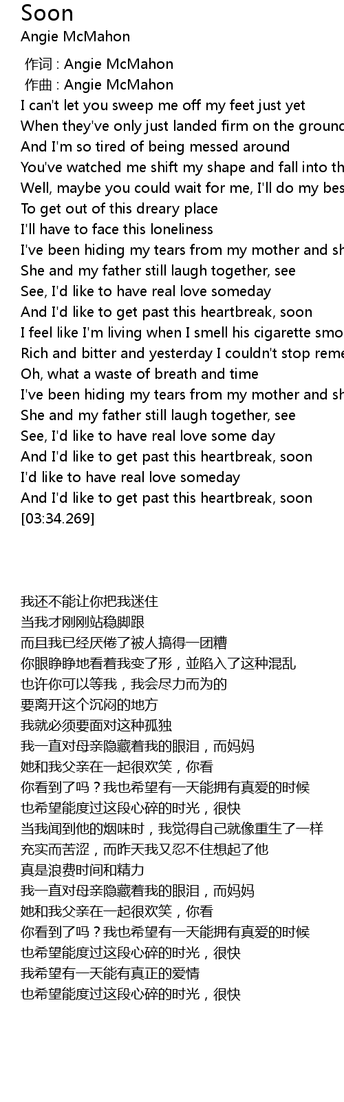 | [00:00.000] | zuò cí : Angie McMahon |