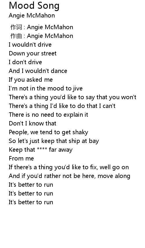 | [00:00.000] | zuò cí : Angie McMahon |