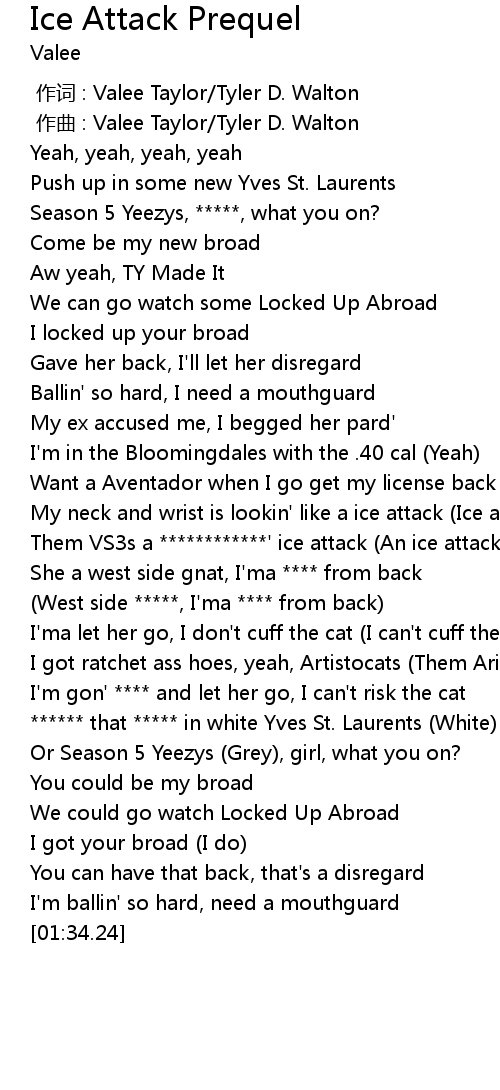 | [00:45.21] | My neck and wrist is lookin' like a ice attack Ice attack |