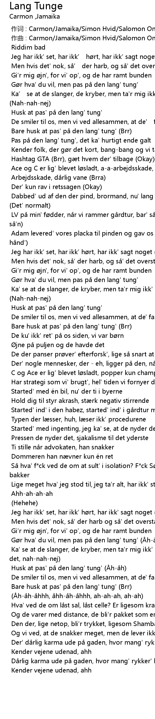 | [01:23.246] | Ka' se at de slanger, de kryber, men ta'r mig ikk' af det (Nah-nah-nej) |